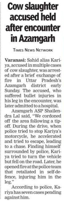 Cow slaughter accused held after encounter in Azamgarh