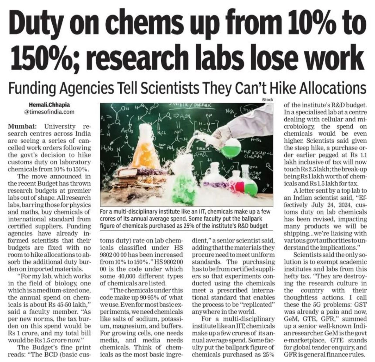 Duty on chemicals up from 10% to 150%