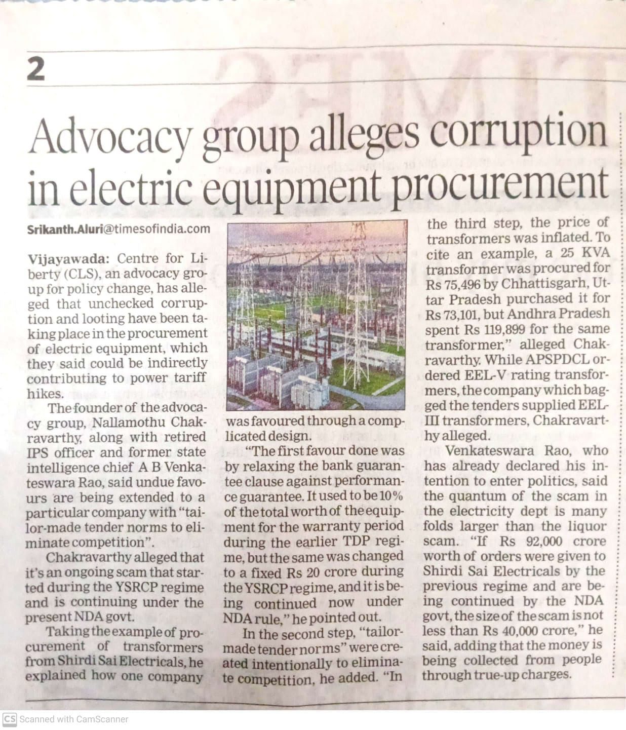 Power supply agreement - between SECI and the AP State Government - bribery involved - registering case under PC Act and investigate